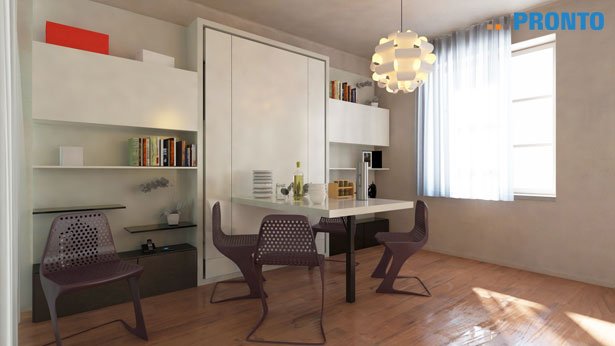 Make every square foot of your studio apartment, small apartment or make larger apartment look bigger. Get smart solution with our extensive collection of transforming furniture designed to maximize any space – large or small. Visit our showroom to see a large range of multi-functional wall bed (or Murphy bed) systems, designed and made by Pronto. A well-designed space that uses transforming furniture can make your home – small or large – function like a space twice its size.